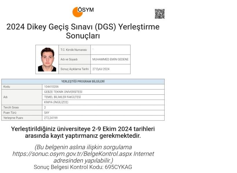Mezun öğrencilerimizden Muhammed Emin Gedene Gebze Teknik Üniversitesi Temel Bilimler Fakültesi Kimya (İngilizce) bölümünü, İremnur Bozkurt İnönü Üniversitesi Fen-Edebiyat Fakültesi Moleküler Biyoloji ve Genetik (İngilizce) bölümünü, Sude Nur Zeybek Balıkesir Üniversitesi Fen-Edebiyat Fakültesi Kimya Bölümünü kazanmışlardır.