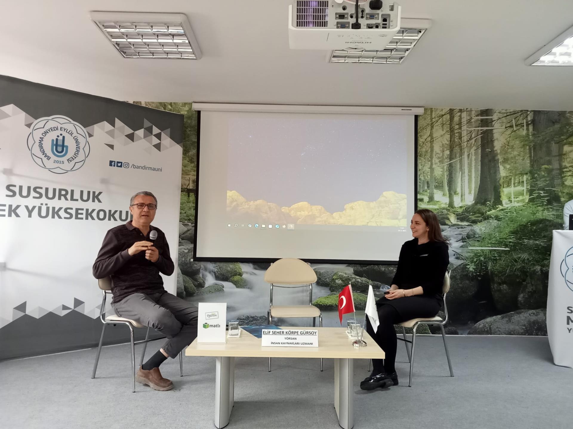 Söyleşide konuğumuz öğrencilere; mezun olduktan sonra iş başvurusunda bulunurken özgeçmiş hazırlama tekniklerini, cv oluşturmanın içeriği ve teknikleri, mülakatta uyulması, dikkat edilmesi gerekilen konular hakkında bilgilendirmede bulunmuştur. Örnek olması açısından; bir öğrenci ile uygulamalı yapılan mülakat görüşmesi bölümünün ardından Dr.Öğr.Üyesi Adem KABASAKAL'ın konuğumuza teşekkür belgesini takdimi ile program sona ermiştir.