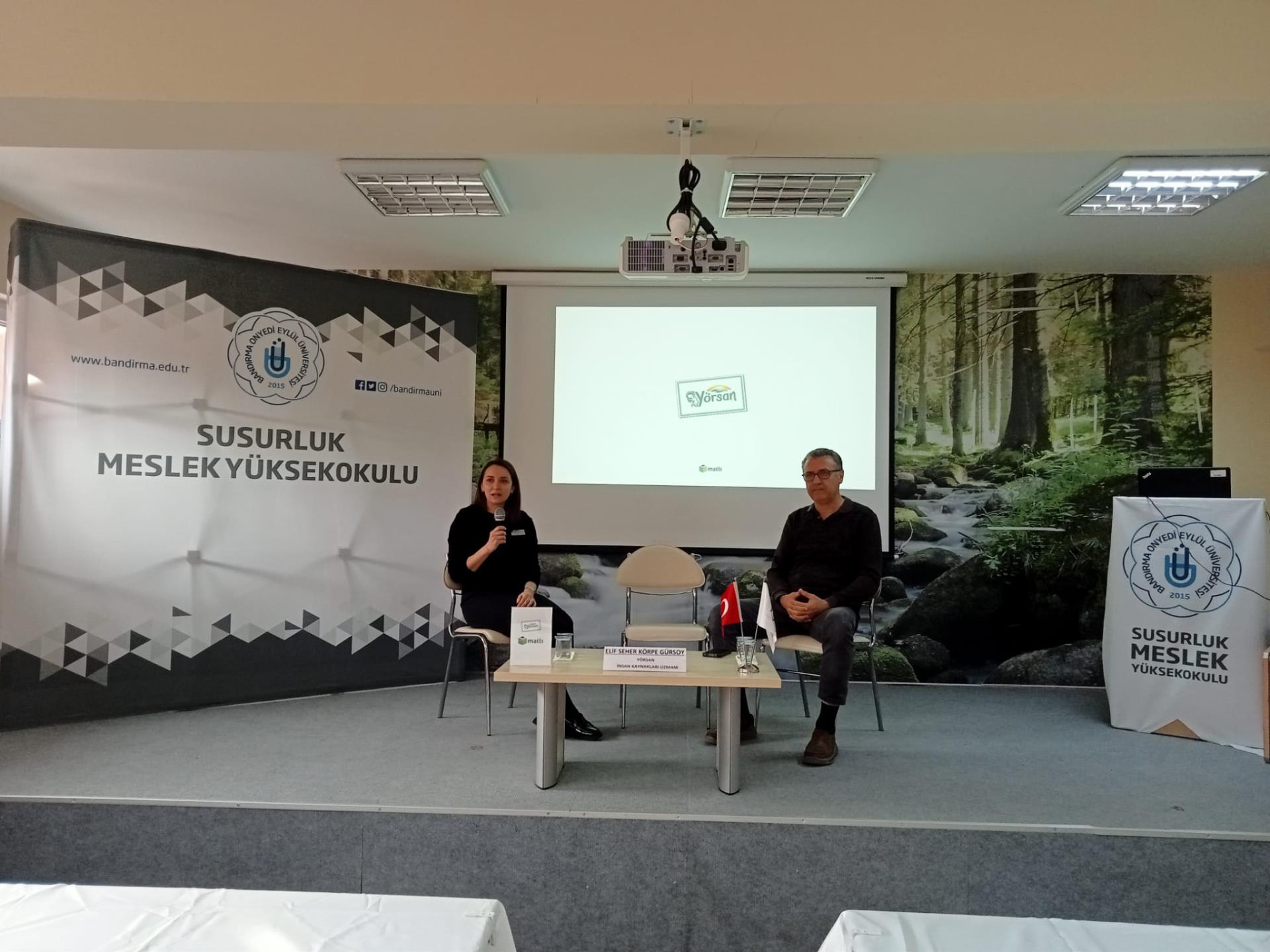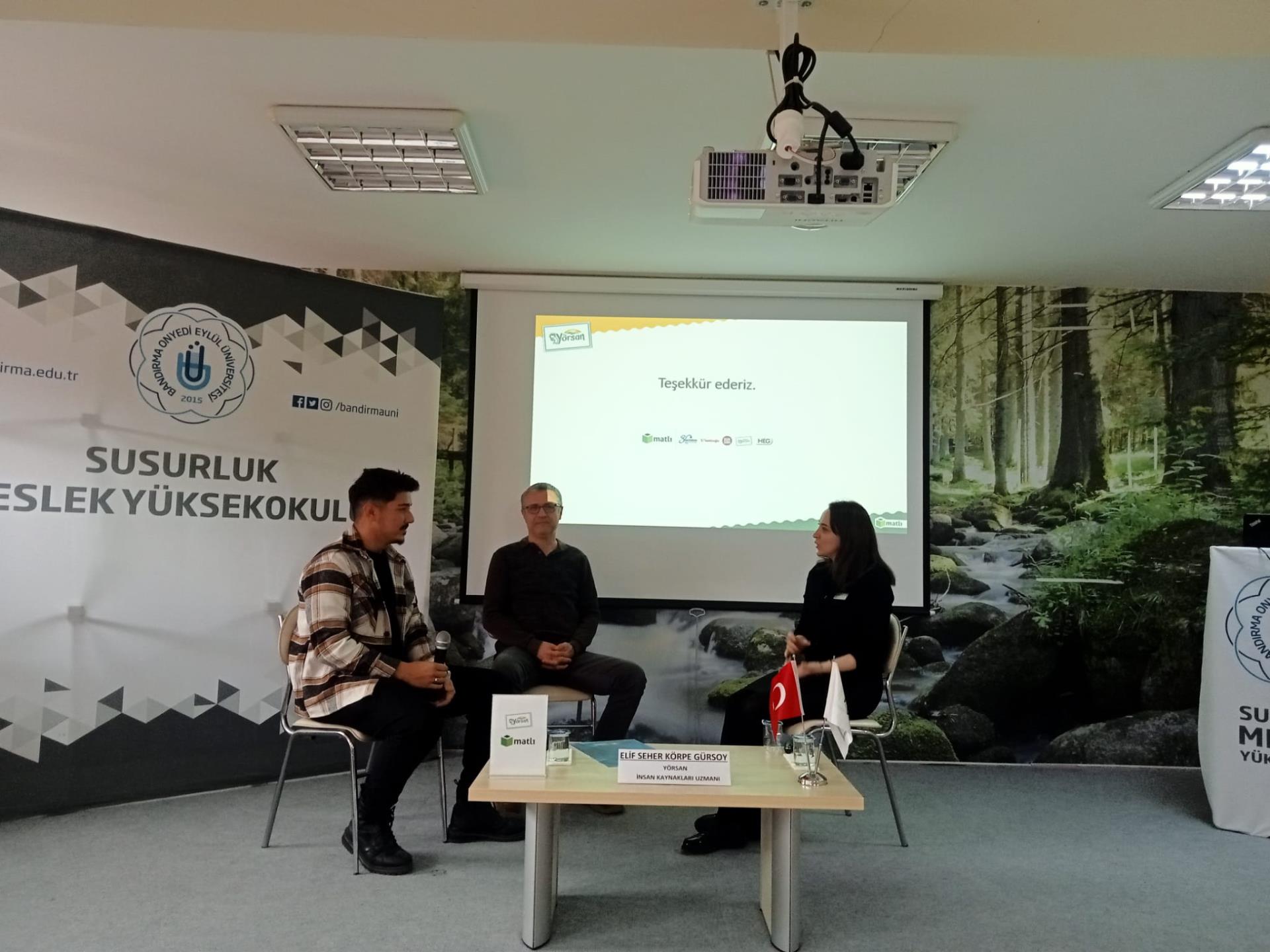 Yüksekokulumuzda 24 Aralık 2025 Çarşamba günü Yüksekokulumuz Gıda İşleme Bölümü Başkanı Dr.Öğr.Üyesi Adem KABASAKAL'ın moderatörlüğünde, YÖRSAN İnsan Kaynakları Uzmanı Elif Seher KÖRPE GÜRSOY tarafından "Kariyer Yönetimi: Özgeçmiş Hazırlama ve Mülakat Teknikleri" konulu söyleşi düzenlendi.